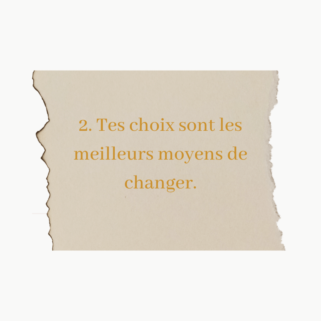 Si certains changements ne sont pas soumis à notre volonté, les conséquences et la tournure que les choses prendront sont totalement entre nos mains. Autrement dit, nos choix vont déterminer quelle direction nous allons prendre suite à tout ce qui arrive. Et nos choix de tous les jours, les plus simples comme ce qu’on mange, ce qu’on écoute, notre entourage, sont ceux qui ont le plus d’impact sur le long terme.